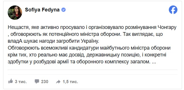 Обговорюють всеможливі кандидатури майбутнього міністра оборони крім тих, хто реально має досвід, державницьку позицію, і конкретні здобутки у розбудові армії та оборонного комплексу загалом. …