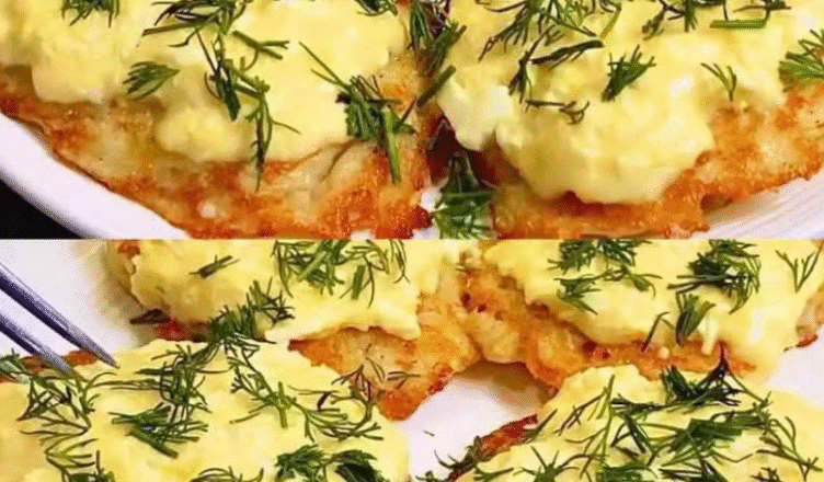 У миску яйця і твердий сир натираю на терці. Додаю майонез, видавлюю часник, перемішую. Тепер сирну начинку викладаю поверх картопляних коржиків, накриваю кришкою на 5 хвилин і готово.