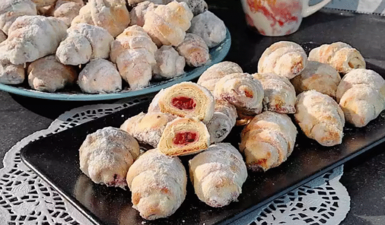 Приготую улюблені та смачні рогалики на сметані та смальці з вишнею! Виходять розсипчасті й такі смачні! Все завдяки свинячому жиру!