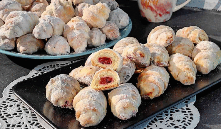 Приготую улюблені та смачні рогалики на сметані та смальці з вишнею! Виходять розсипчасті й такі смачні! Все завдяки свинячому жиру!