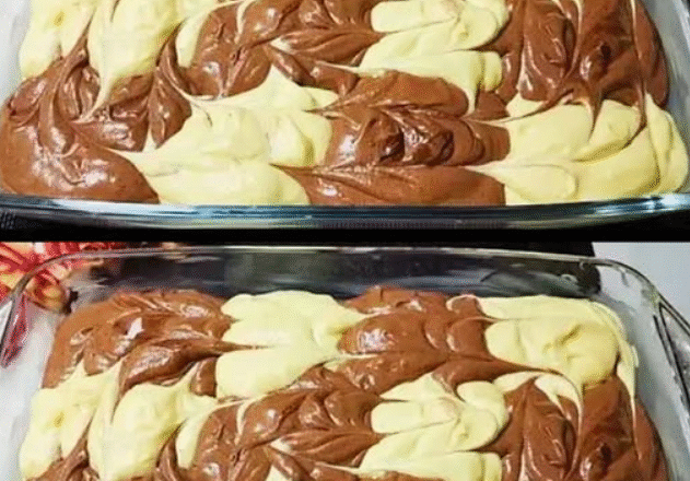 Змащую олією прямокутну форму для випікання. Викладаю світле та темне тісто, як в шахматах. Потім малюю візерунок.
