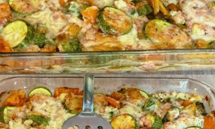 Змішуємо всі овочі і викладаємо у форму для запікання.