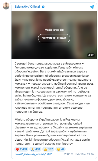 Зеленський наголосив, що першочергову увагу приділяють не лише техніці, а й особовому складу. Йдеться про тренування, поповнення бригад та контроль за забезпеченням фронту дронами та зброєю. Саме люди, за словами президента, є основою ефективності ППО.