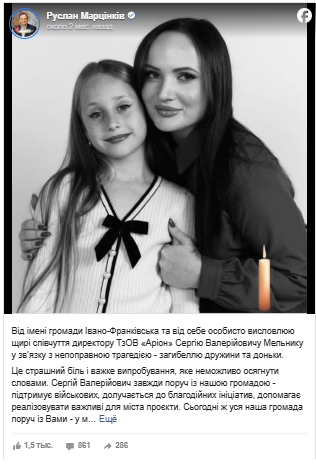 Трагедія викликала глибокий резонанс в Івано-Франківську. Мер міста Руслан Марцінків висловив офіційні співчуття Сергію Мельнику, відзначивши його вагомий внесок у підтримку військових та благодійні ініціативи громади. Наразі правоохоронні органи розпочали кримінальне провадження за ч. 3 ст. 286 Кримінального кодексу України, що передбачає відповідальність за порушення правил безпеки дорожнього руху, яке спричинило загибель кількох осіб. Слідчі та експерти продовжують роботу над встановленням усіх деталей трагедії та наданням остаточної правової оцінки діям кожного з учасників цієї смертельної аварії.